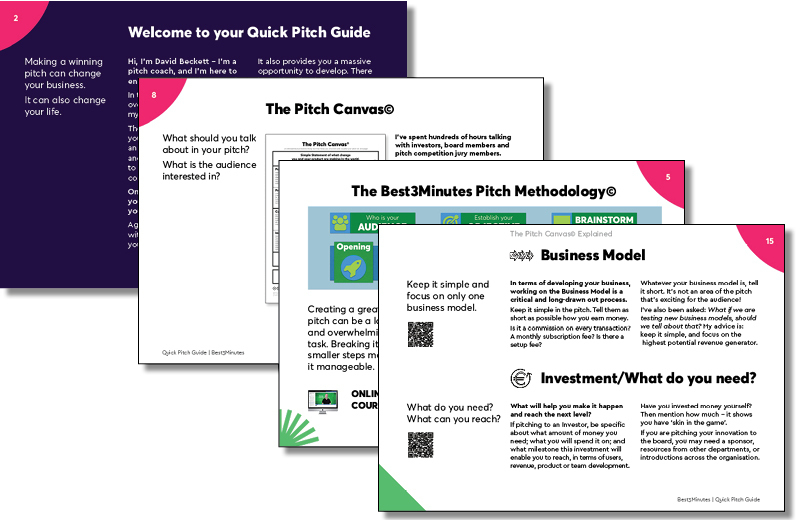 Need to win Investment or business? The Pitch To Win Guide gives you all the tools you need, including QR codes with access to pitch examples, and a short online course.